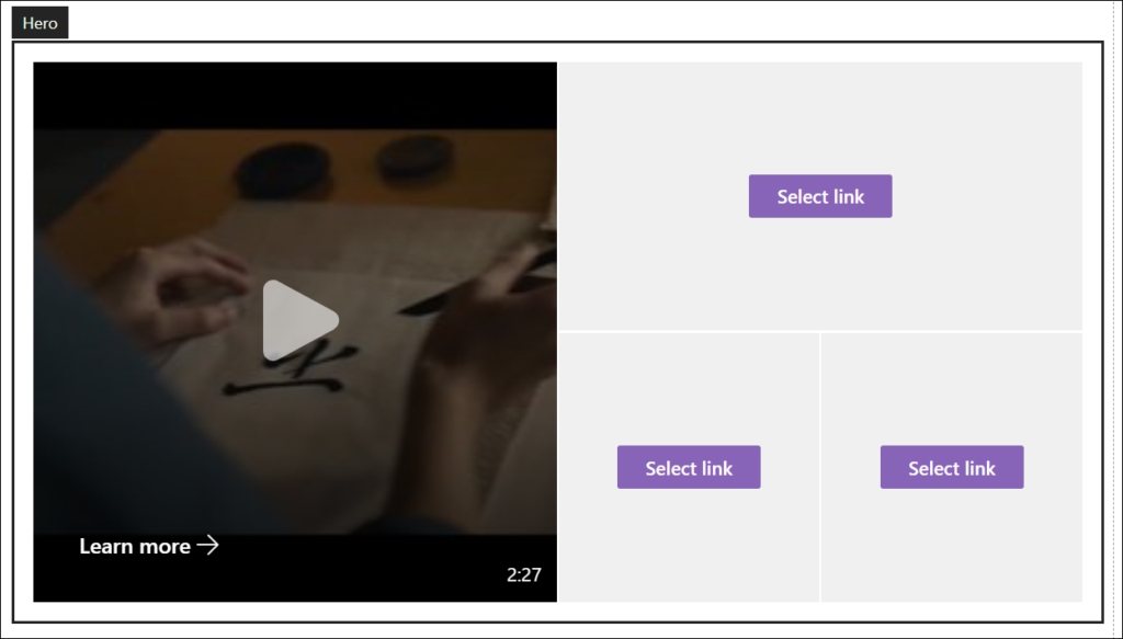 The webpart automatically recognizes that the link is a video link and displays the video thumbnail. The Hero webpart is also fully interactive – a click on the video automatically plays the video.